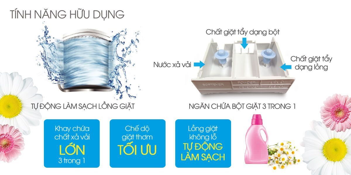 - 8 chương trình giặt, 7 tính năng bảo vệ ưu việt giảm thiểu rủi ro trong quá trình sử dụng