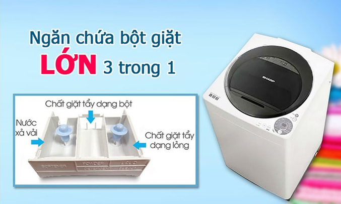 Máy giặt Sharp ES-W78GV-G được thiết kế tiện lợi có khả năng tích hợp chất giặt tẩy dạng bột, dạng lỏng và nước xả vải trong cùng một ngăn chứa. Điều này mang đến sự tiện lợi và thoải mái cho gia đình bạn trong quá trình sử dụng.