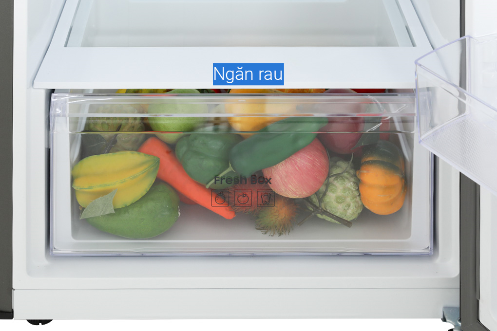 - Ngăn lạnh có dung tích 268 lít, gồm có ngăn đông mềm, kệ chia làm nhiều ngăn, hộp đựng rau củ quả và khay chứa (nằm ở cánh cửa tủ).