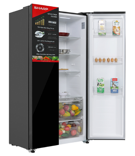 - Tủ lạnh Sharp đáp ứng tốt cho nhu cầu bảo quản thực phẩm của các hộ gia đình từ 4 - 5 người nhờ thiết kế dung tích sử dụng 442 lít.