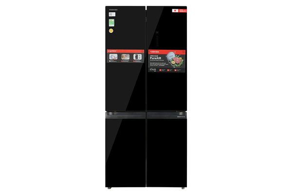 - Toshiba GR-RF677WI-PGV(22)-XK thuộc dòng tủ lạnh Multi Door có 4 cánh, thiết kế cửa kính đen cường lực sang trọng, tạo điểm nhấn cho không gian bếp gia đình thêm đẳng cấp, thời thượng.