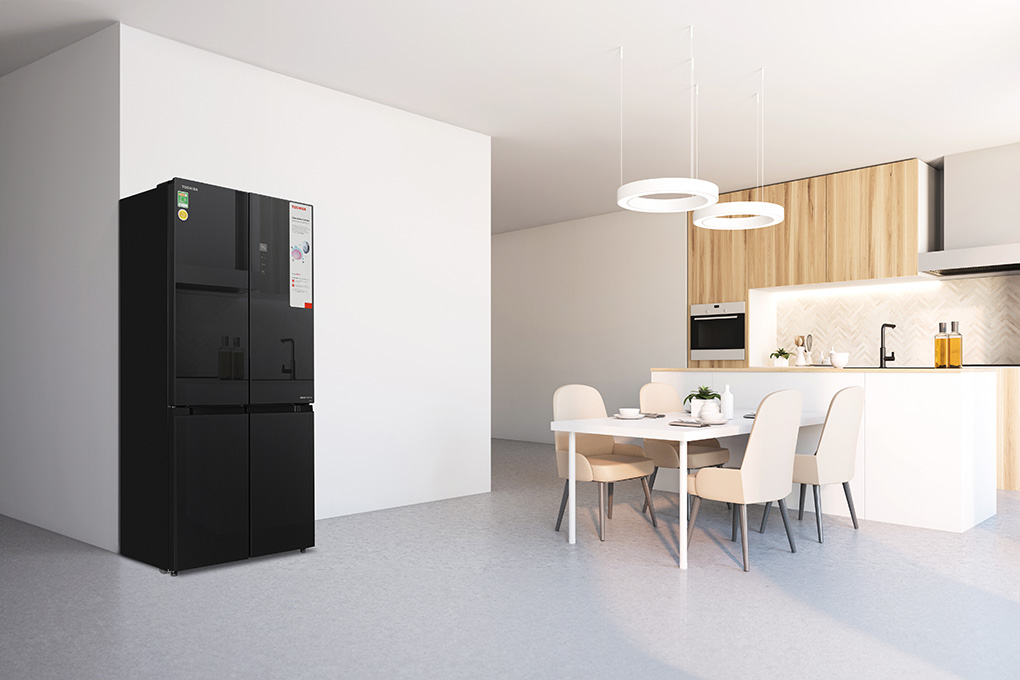- Kiểu dáng tủ lạnh multidoor 4 cửa với cửa kính 4 lớp - vân dệt Nhật Bản sang trọng đẳng cấp.