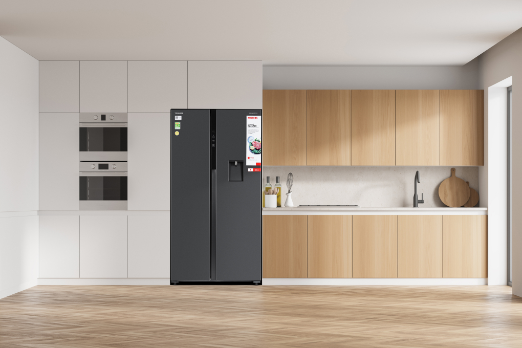 - Với gam màu xám Morandi và sở hữu kiểu thiết kế sang trọng, mẫu tủ lạnh Toshiba này phù hợp cho mọi vị trí bên trong không gian phòng bếp hiện đại.